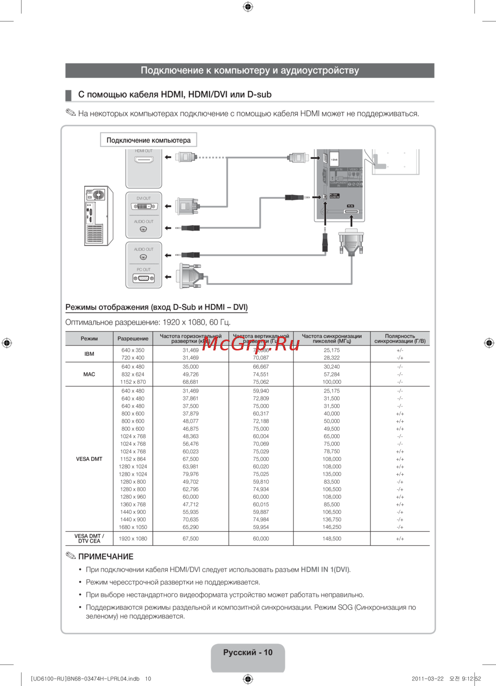 Оптимальное разрешение: 1920 х 1080, 60 Гц.
