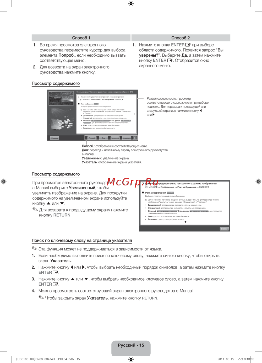 Узнайте, как эффективно использовать электронное руководство для настройки изображений и навигации. Простые шаги для изменения режима изображения и поиска по ключевым словам.