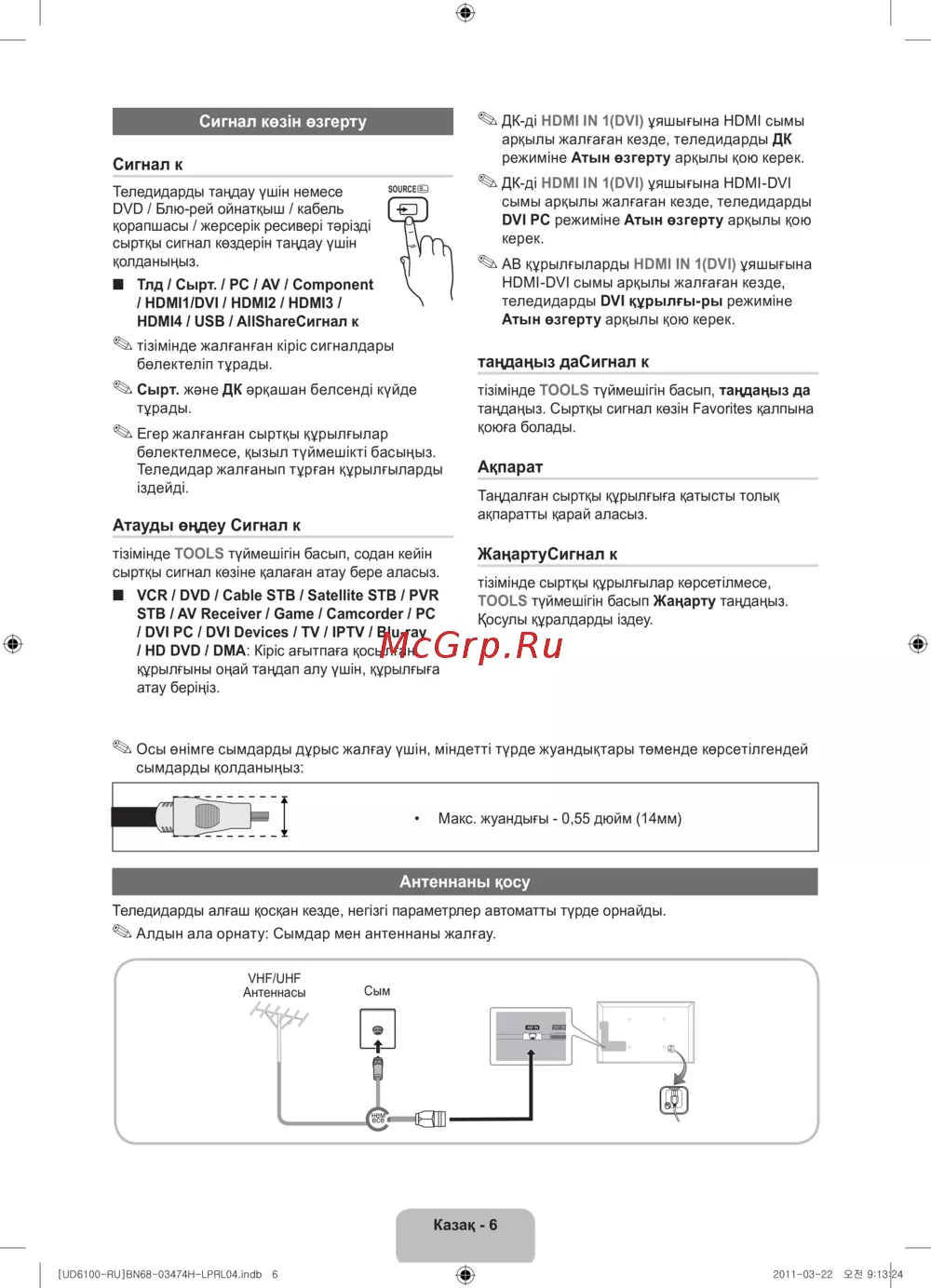 - Теледидар бейнебеті ағымдық сигнал көзі бейнебетін көрсетеді p.76
