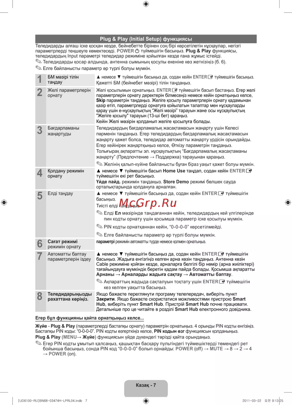 Жүйе - Plug & Play (параметрлерді бастапқы орнату) параметрін орнатыңыз. 4 орынды PIN кодты енгізіңіз.
