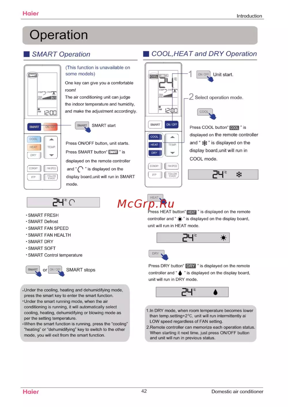 Haier AS09SH1ERA [45/109] Smart operation cool heat and dry operation