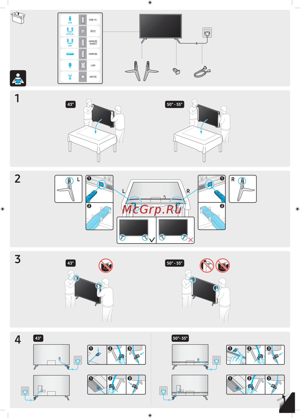 Samsung UE43DU8500UРуководство по распаковке и установке -