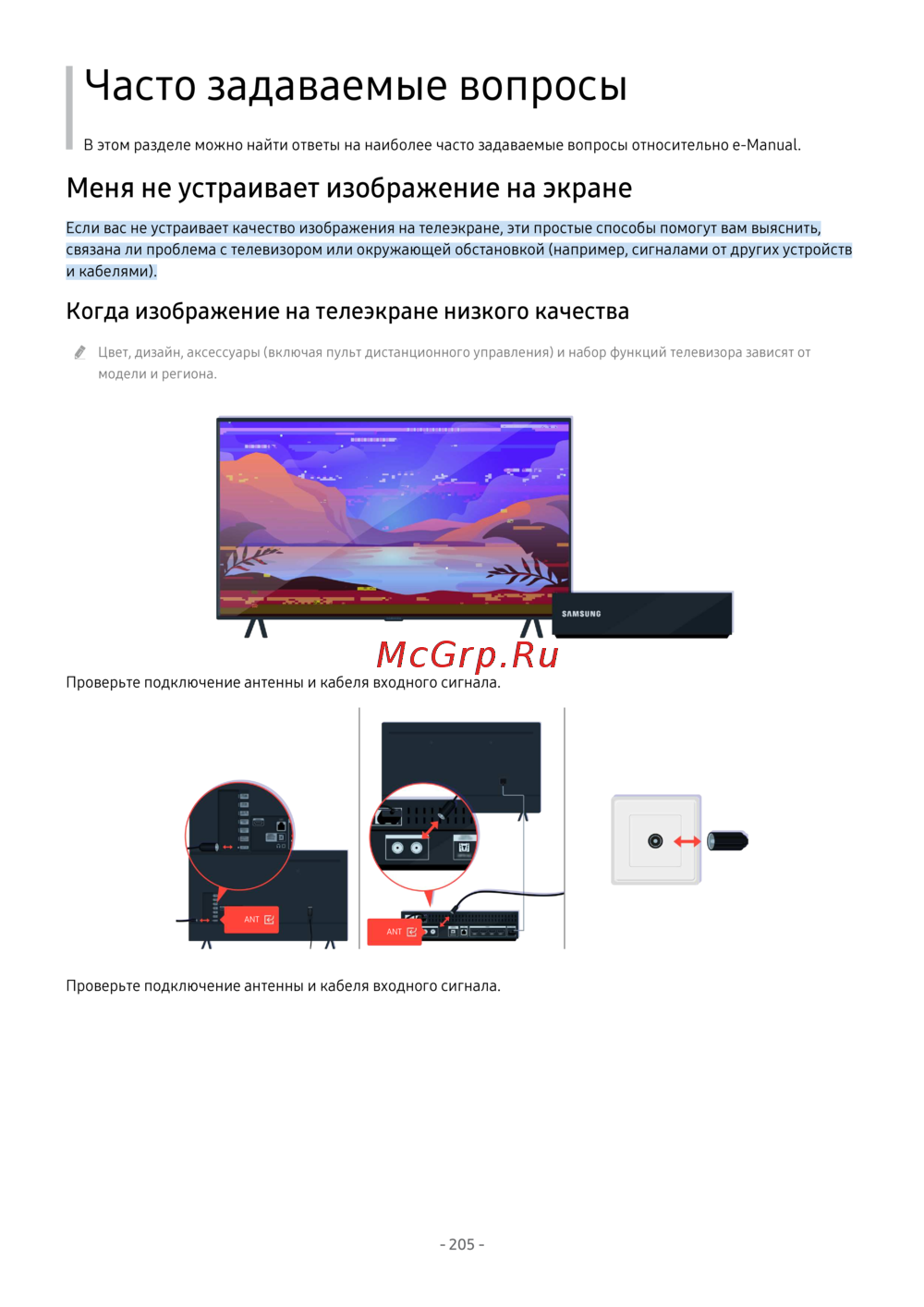 Samsung UE50AU7100U — часто задаваемые вопросы о качестве изображения на экране [205/264]