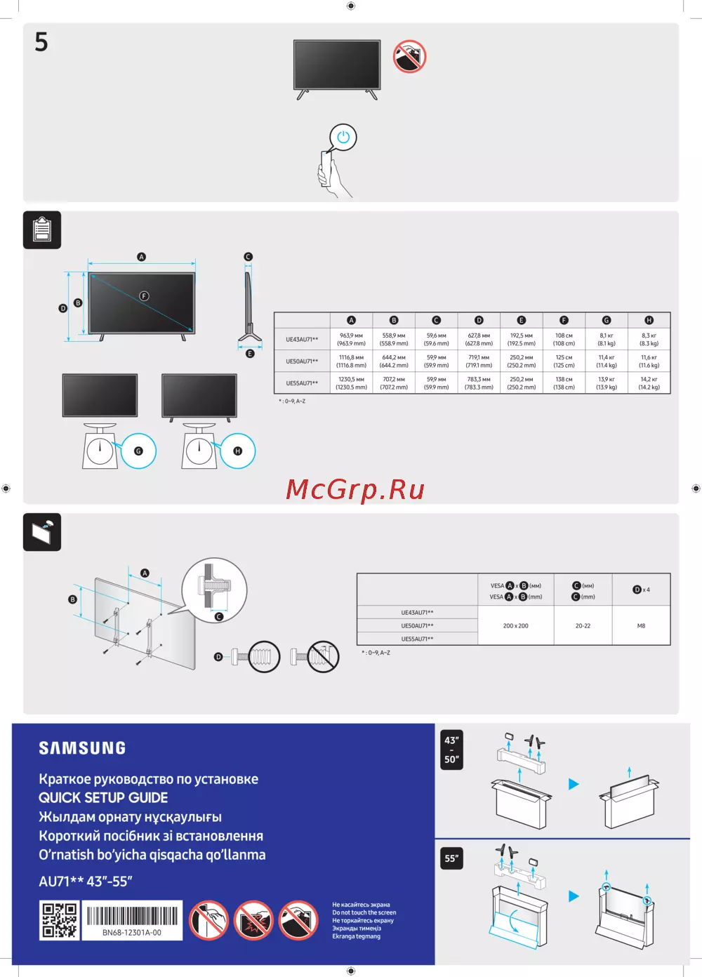 Samsung UE43AU7170U Краткое руководство по установке онлайн