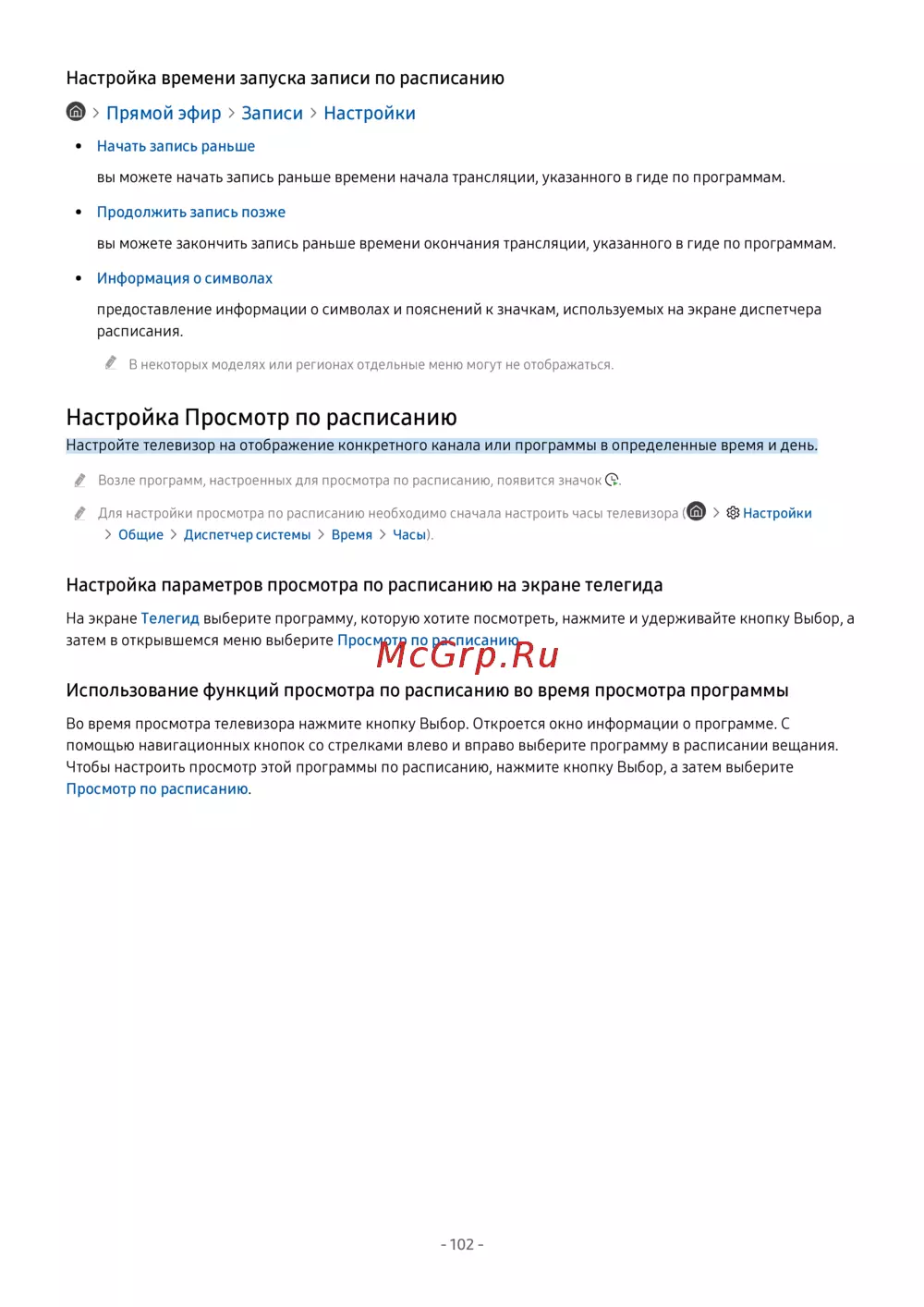 Samsung UE43AU7170U — настройка записи и просмотра программ по расписанию на телевизоре [102/264]