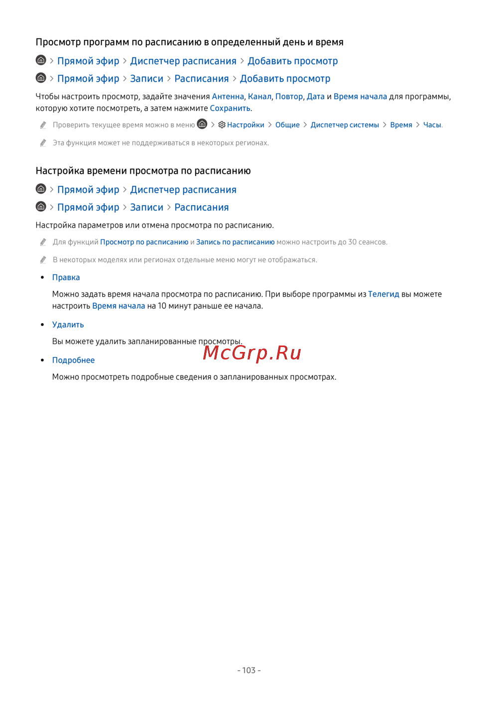 Samsung UE43AU7170U — настройка просмотра программ по расписанию и прямому эфиру [103/264]