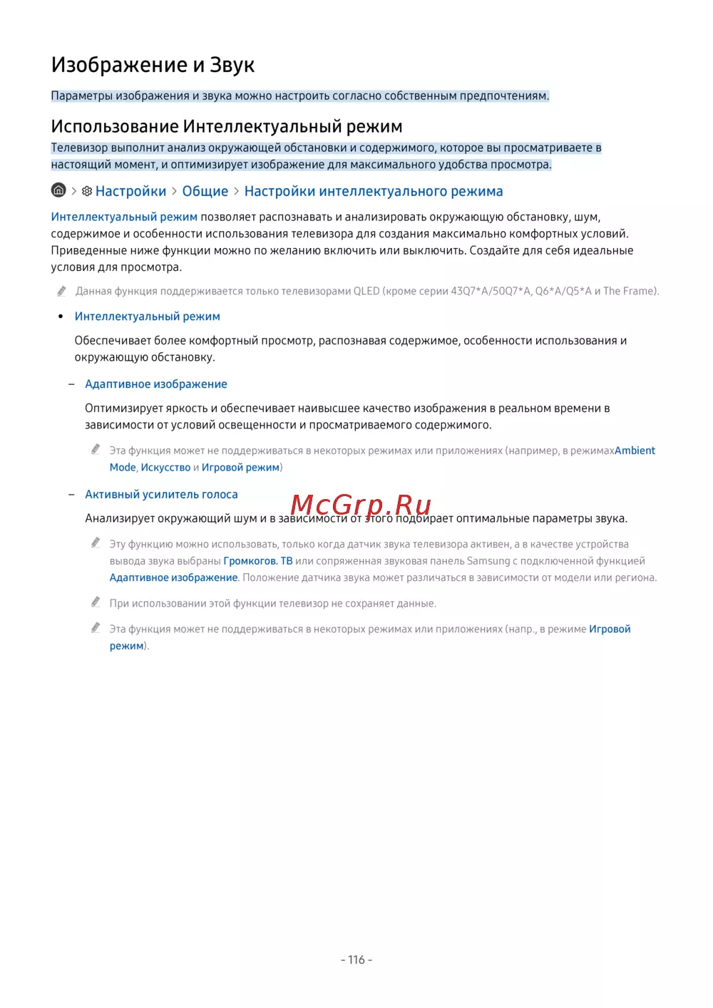 ![Samsung UE65AU7540U [116/264] Использование интеллектуальный режим](/views2/1815740/page116/bg74.png)