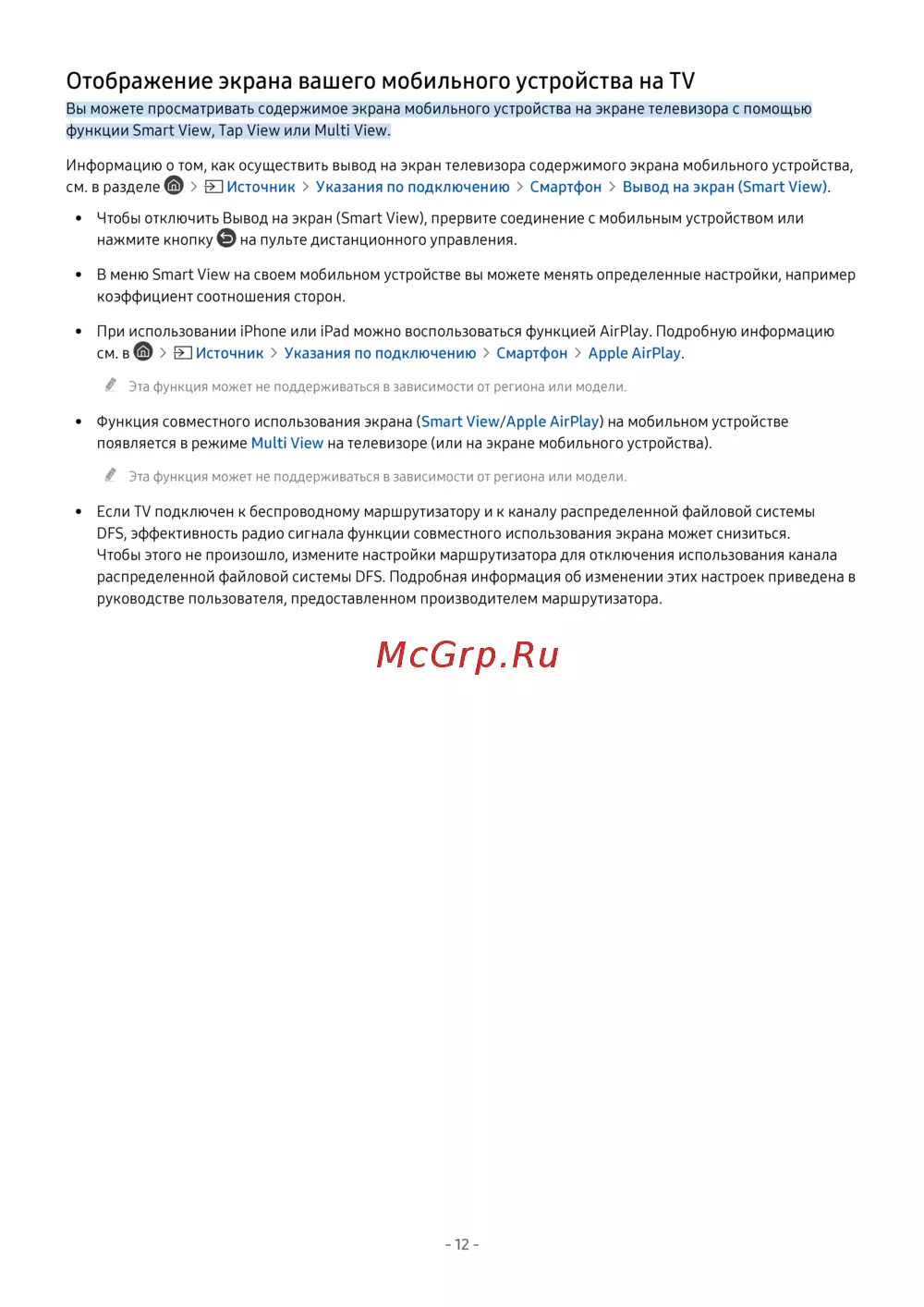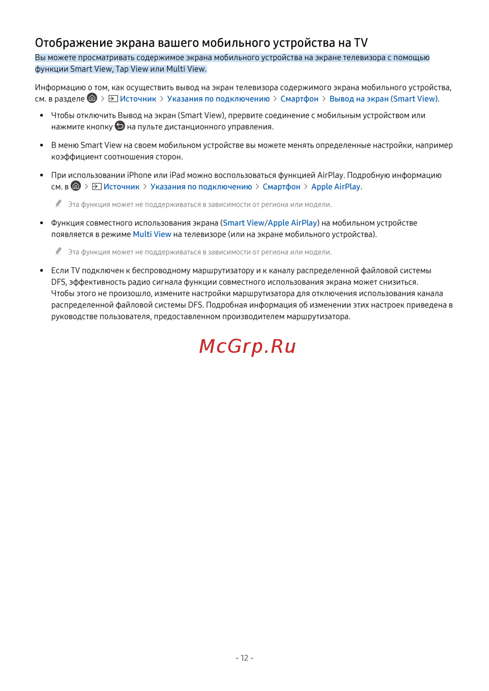 - Отображение экрана вашего мобильного устройства на tv p.12