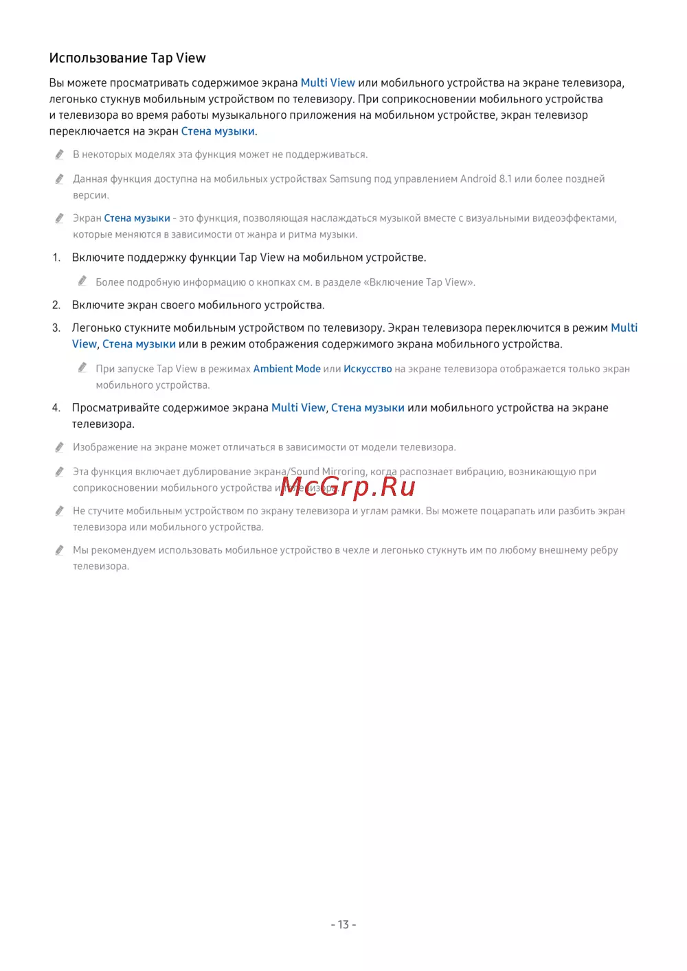 Samsung UE43AU7170U — как использовать функцию Tap View для просмотра контента на телевизоре [13/264]