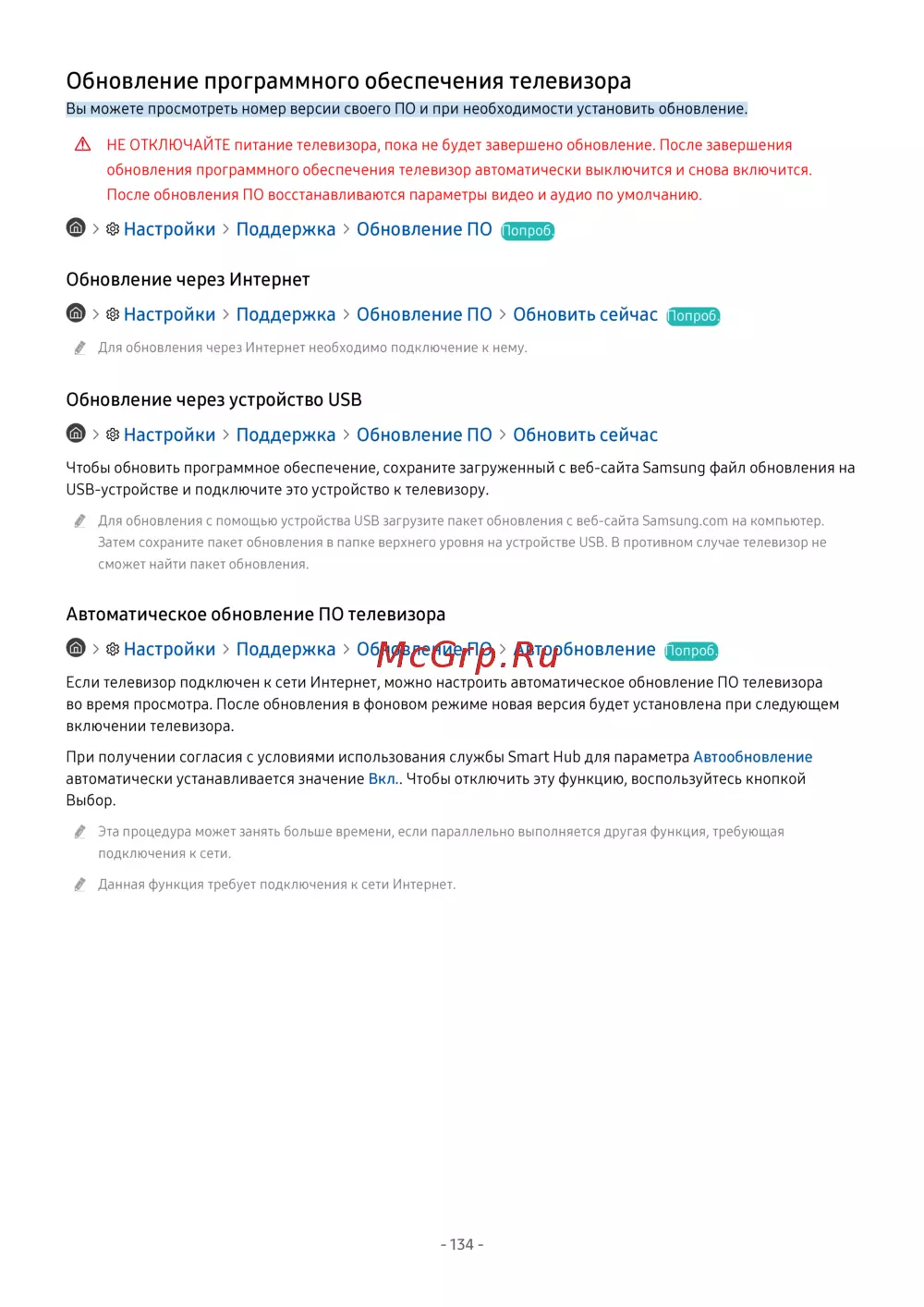 - Обновление до последней версии программного обеспечения телевизора p.235