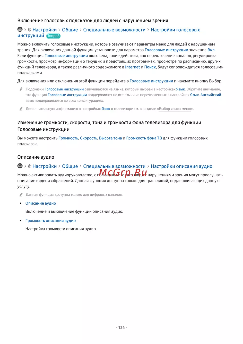Samsung UE43AU7170U — голосовые подсказки и описание аудио для людей с нарушением зрения [136/264]
