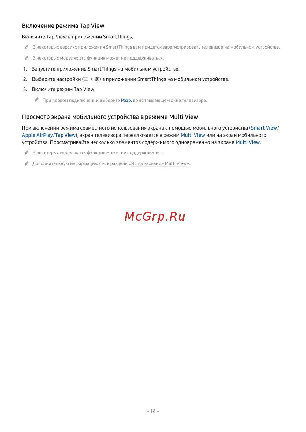 Samsung UE43AU7170U — как включить режим Tap View и использовать Multi View на телевизоре [14/264]