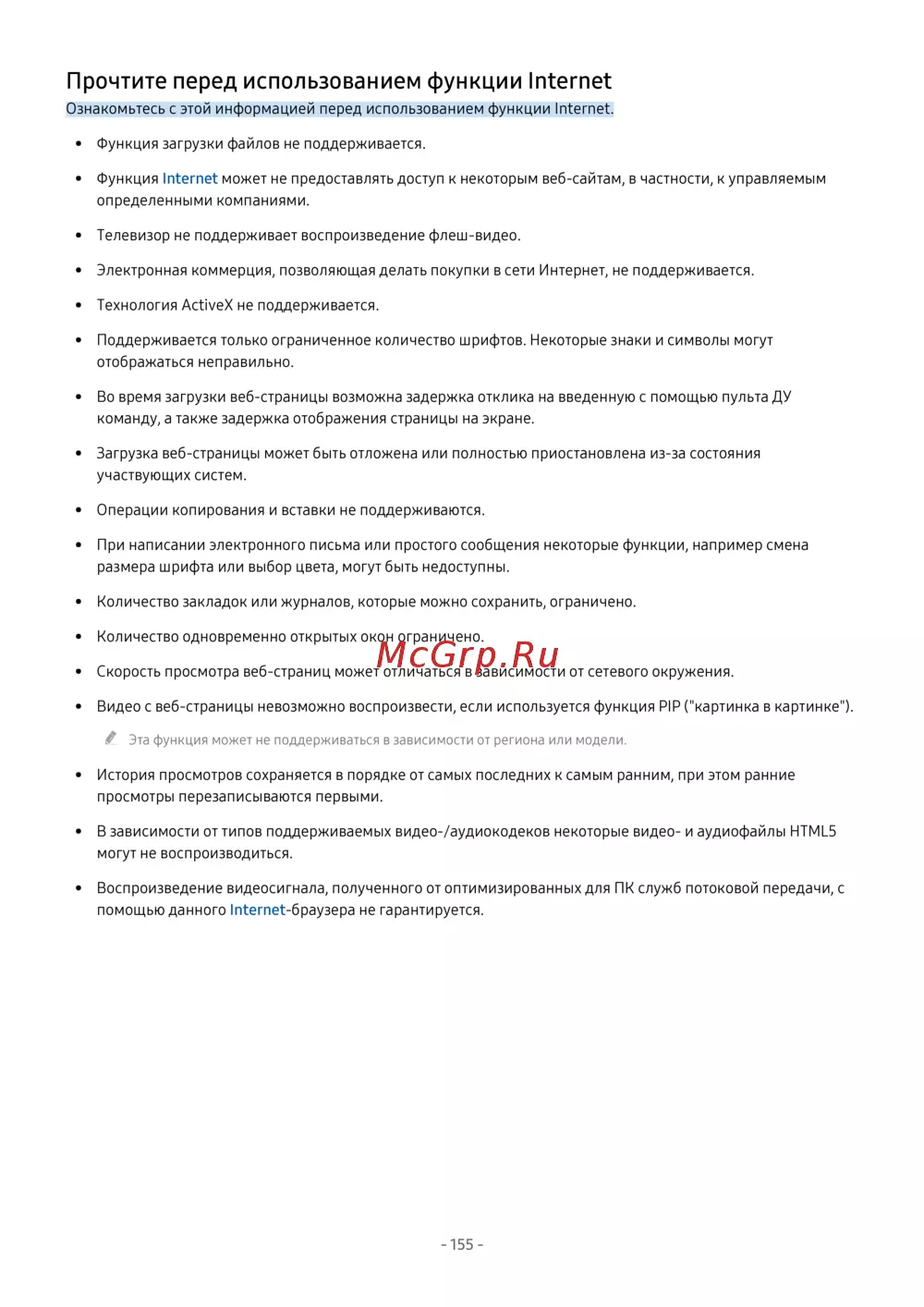 Samsung UE43AU7170U — информация о функциях Internet: ограничения и возможности [155/264]