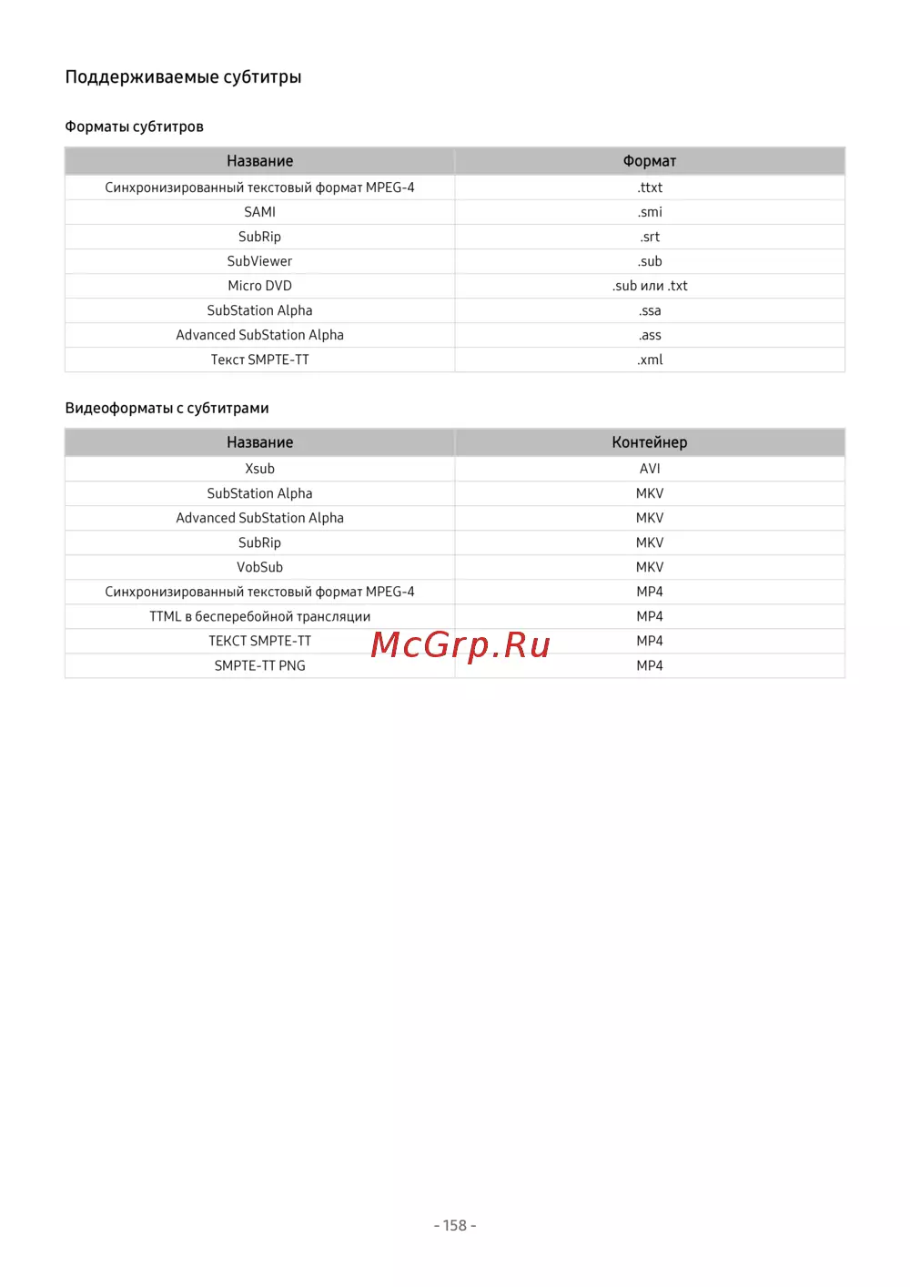 Samsung UE43AU7170U [158/264] Видеоформаты с субтитрами