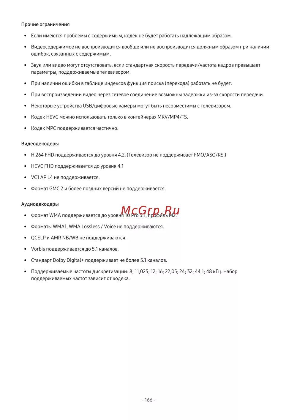 Samsung UE43AU7170U — ограничения и поддерживаемые форматы для видеоконтента [166/264]
