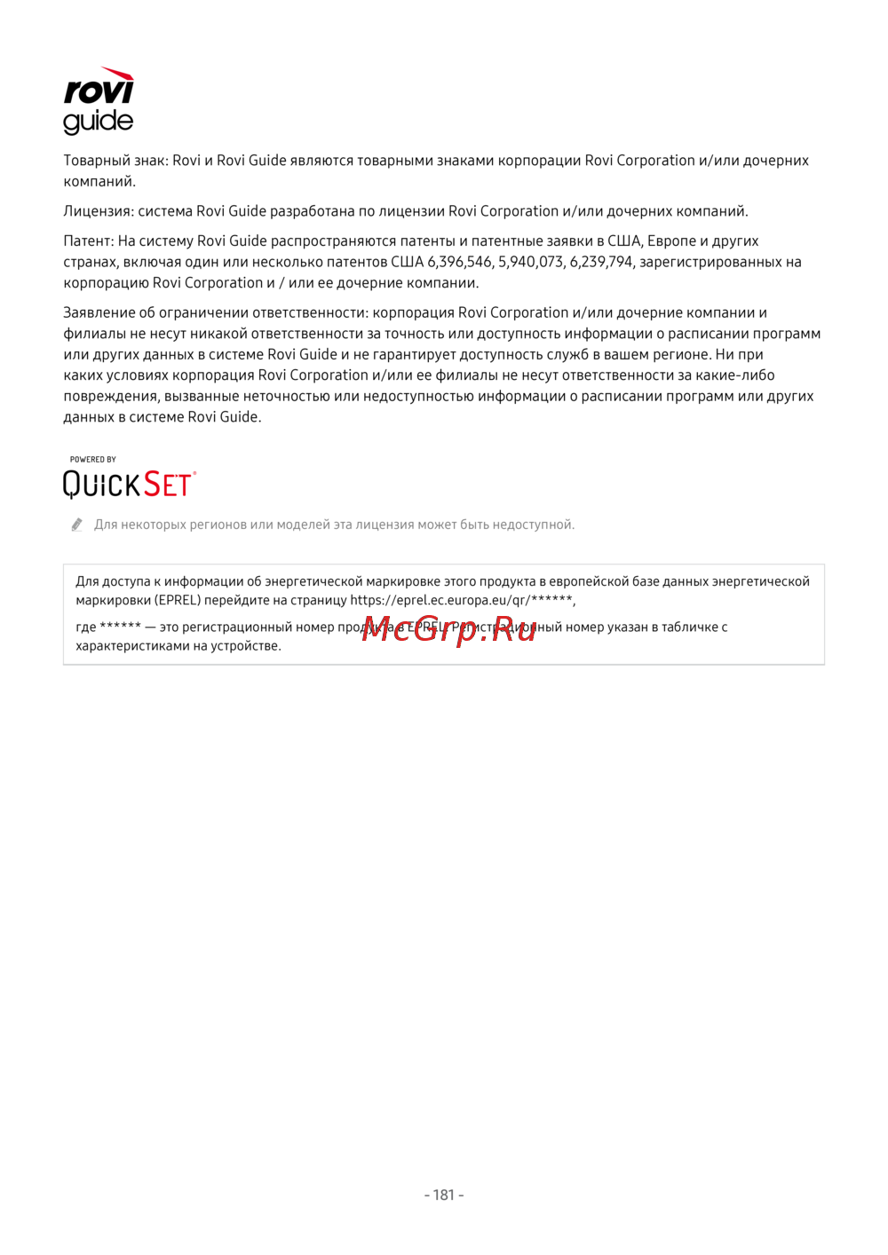 Товарный знак: Rovi и Rovi Guide являются товарными знаками корпорации Rovi Corporation и/или дочерних