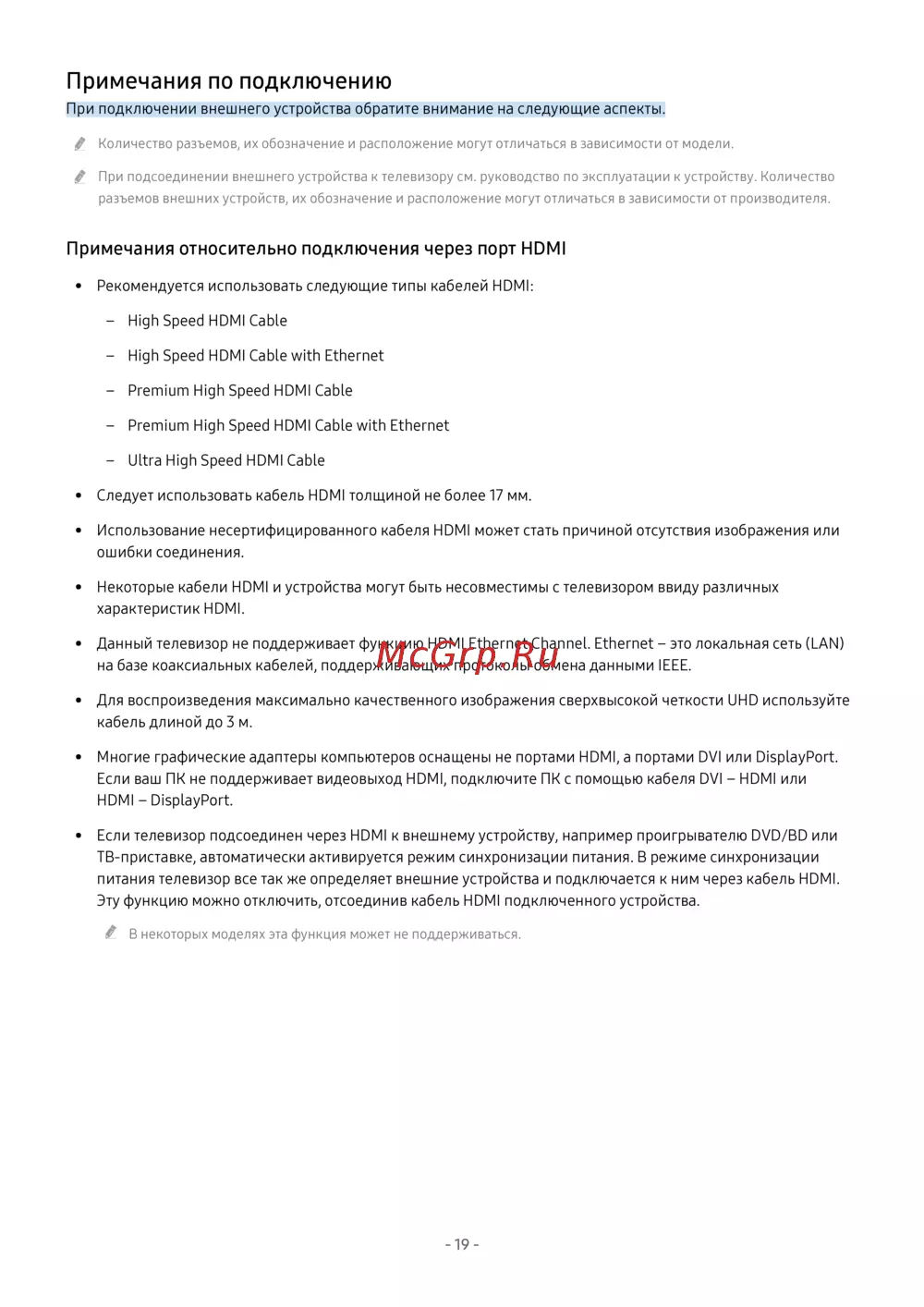 • Некоторые кабели HDMI и устройства могут быть несовместимы с телевизором ввиду различных