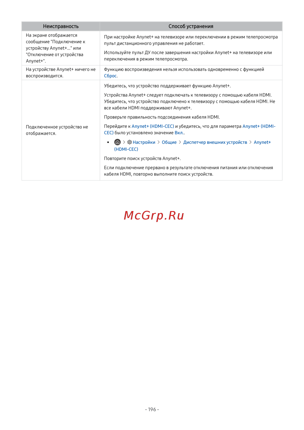 Samsung UE43AU7170U — решение проблем с функцией Anynet+ на телевизоре [196/264]