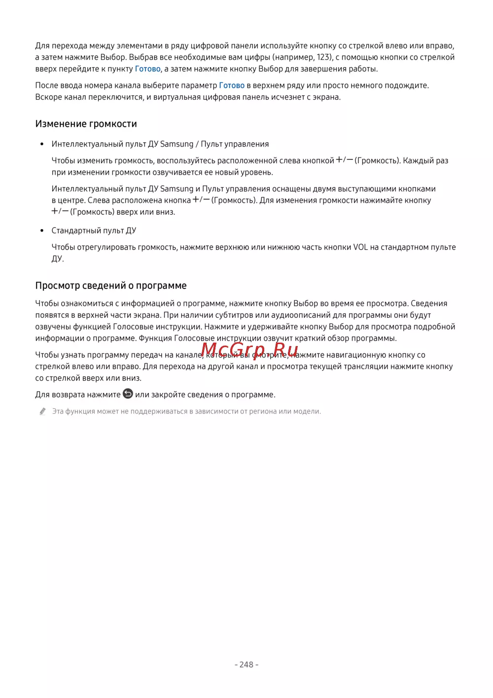 - Работа с телевизором с включенной функцией голосовые инструкции p.247