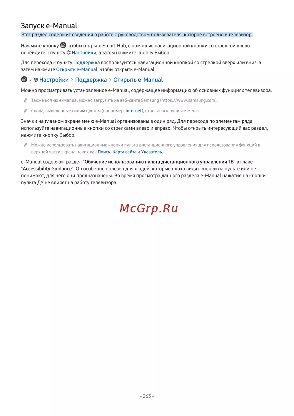 Также копию e-Manual можно загрузить на веб-сайте Samsung (https://www.samsung.com).