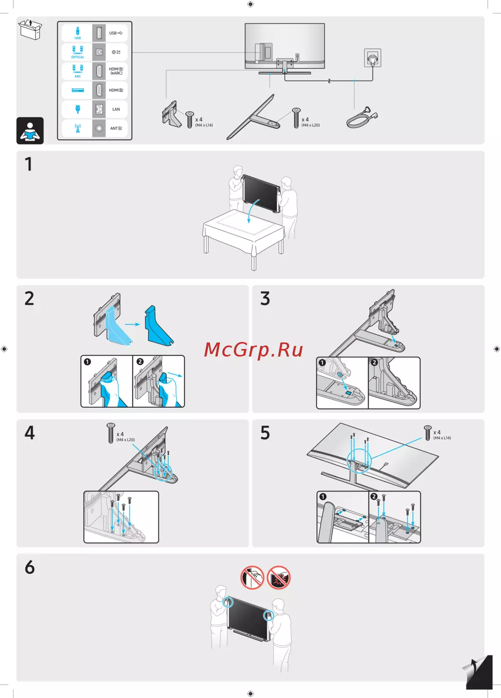 Samsung UE43DU8500UРуководство по распаковке и установке -