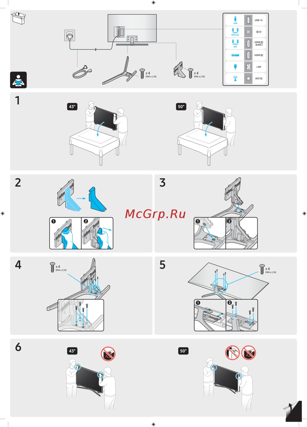 Samsung UE43DU8500UРуководство по распаковке и установке -