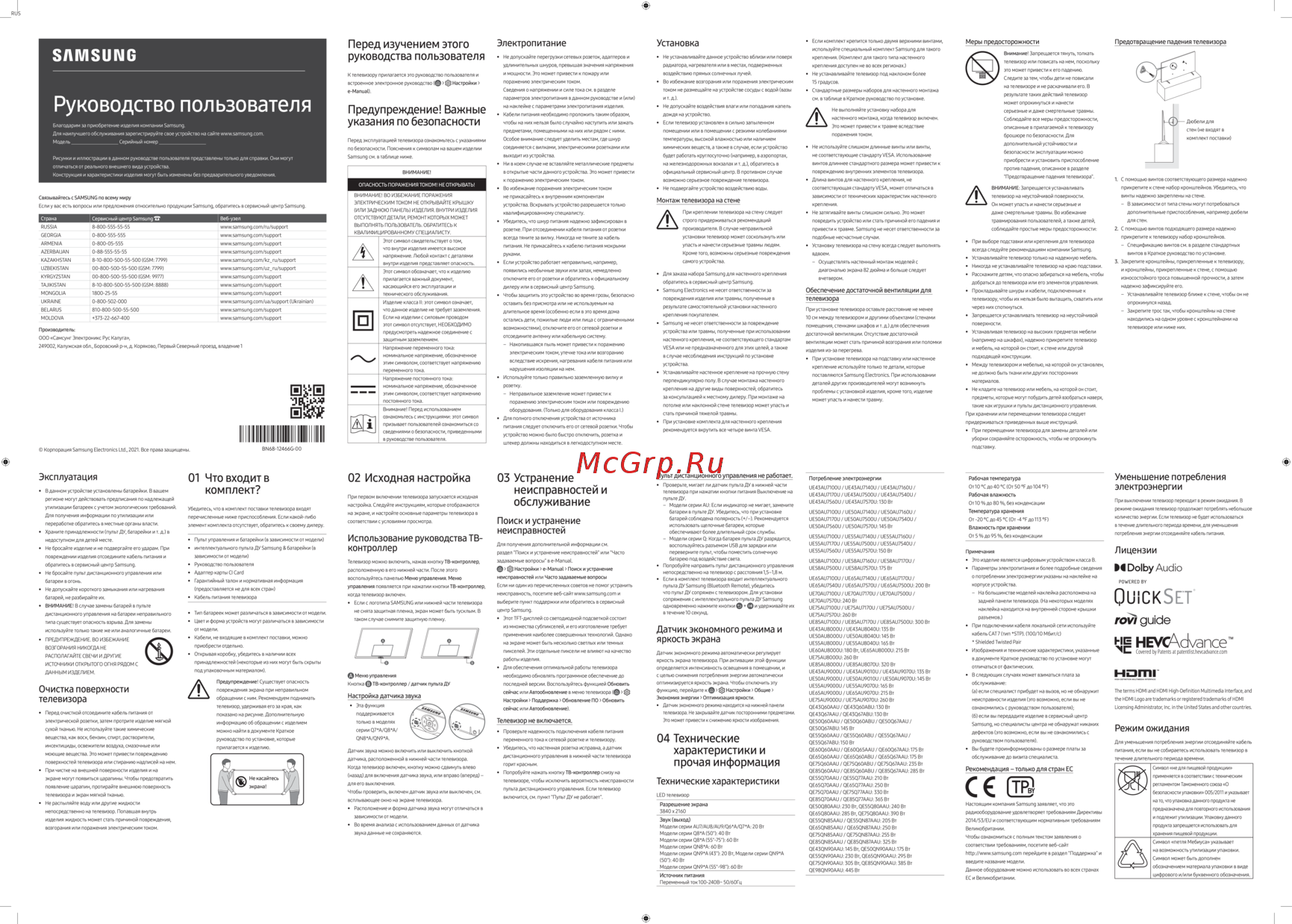 Samsung QE85Q60AAU — руководство пользователя: безопасность и эксплуатация устройства [1/2]