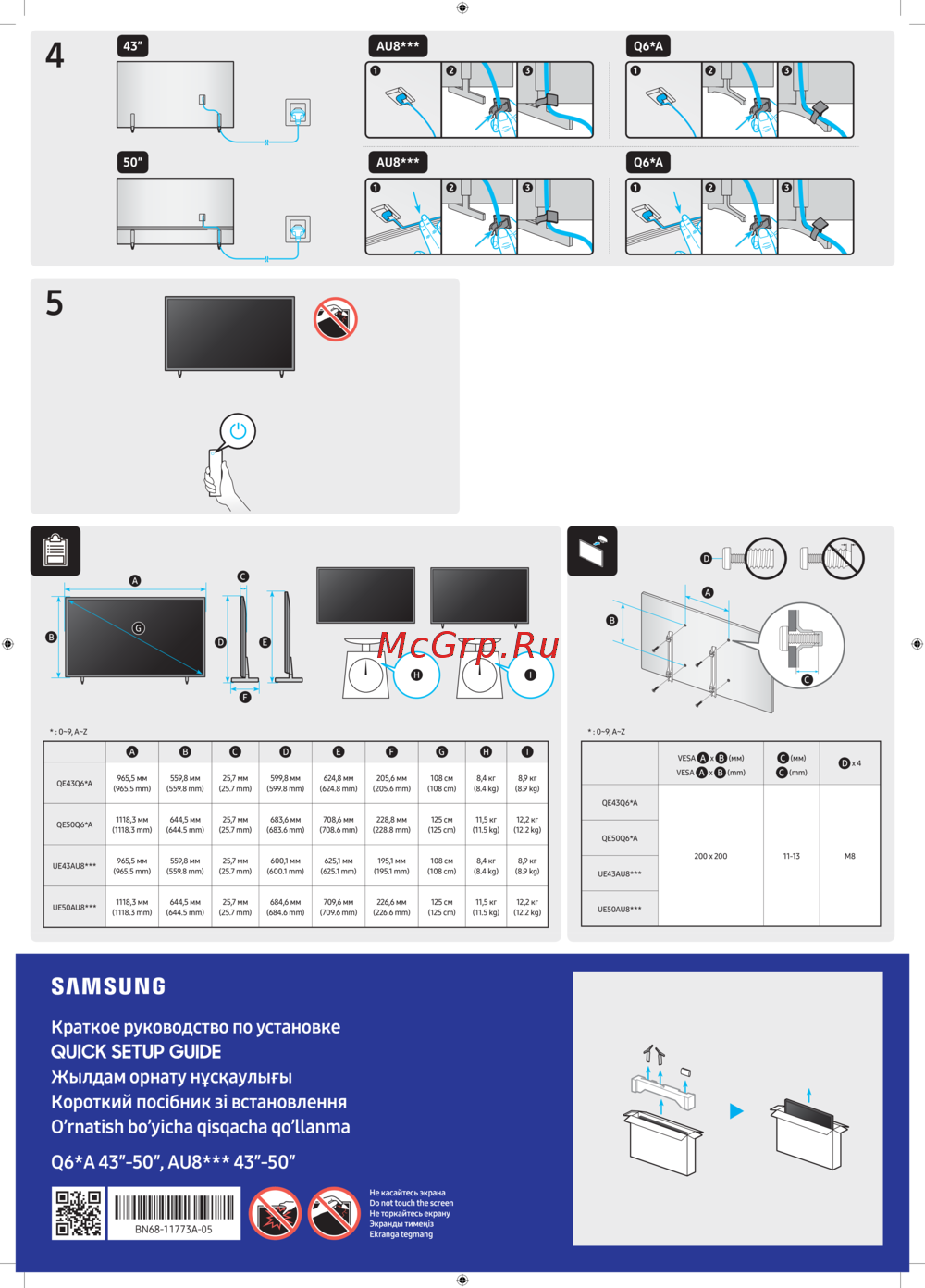 Samsung QE43LS03DAUРуководство по распаковке и установке -