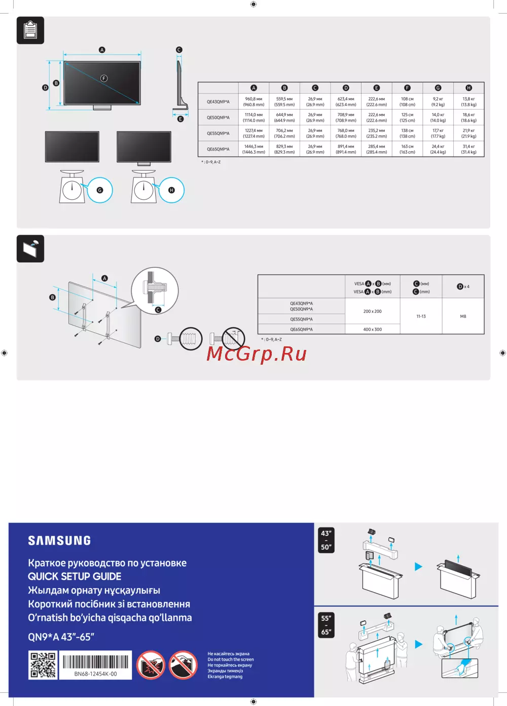 Samsung QE43LS03DAUРуководство по распаковке и установке -