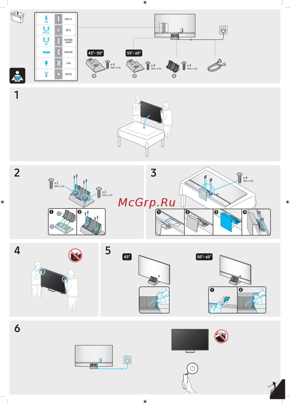 Samsung QE43LS03DAUРуководство по распаковке и установке -