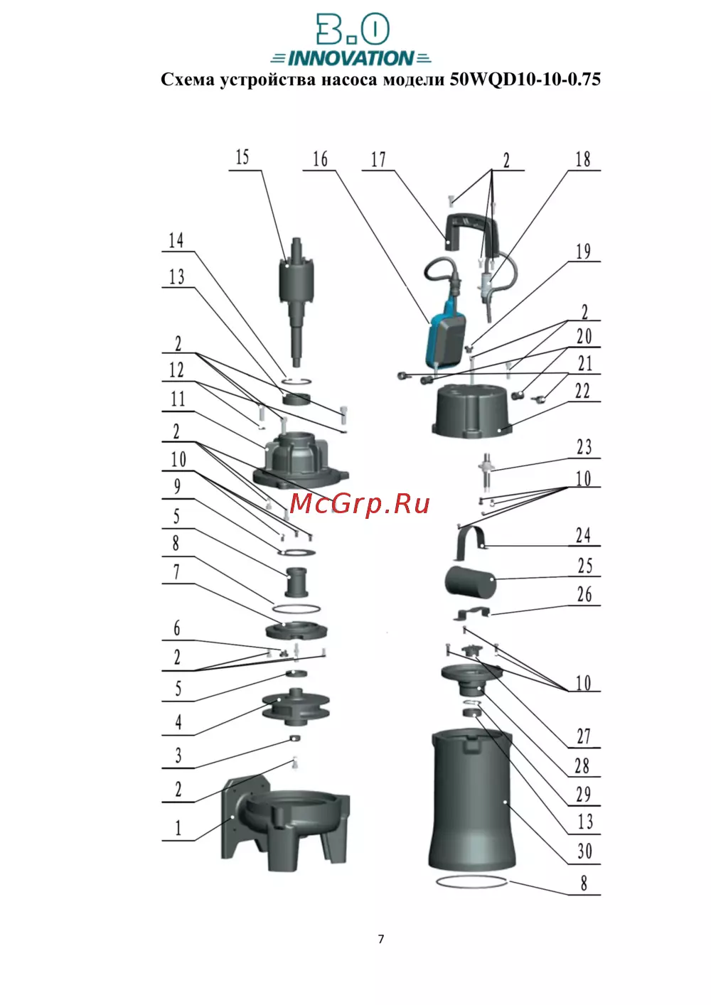 - Схема устройства насоса модели 50wqd10 10 0 5 p.7
