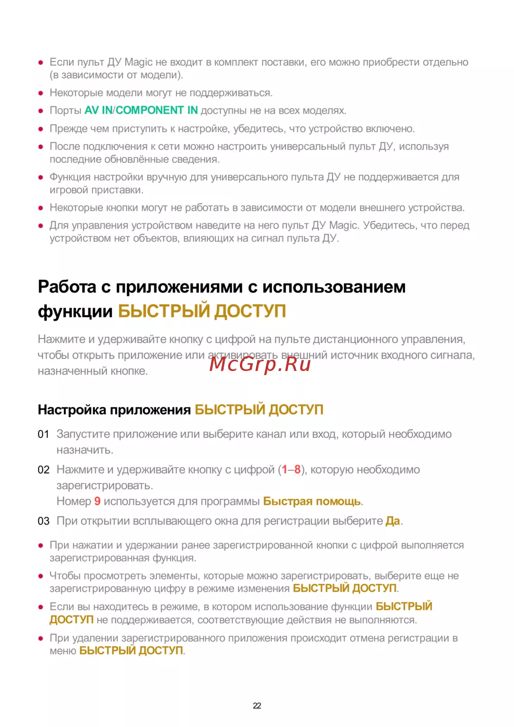 - Если указатель пульта ду magic не отображается на экране телевизора следует выполнить его повторную регистрацию p.13