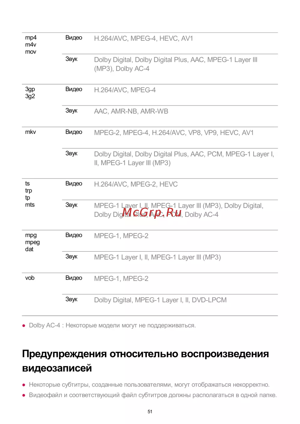 Dolby AC-4 : Некоторые модели могут не поддерживаться.