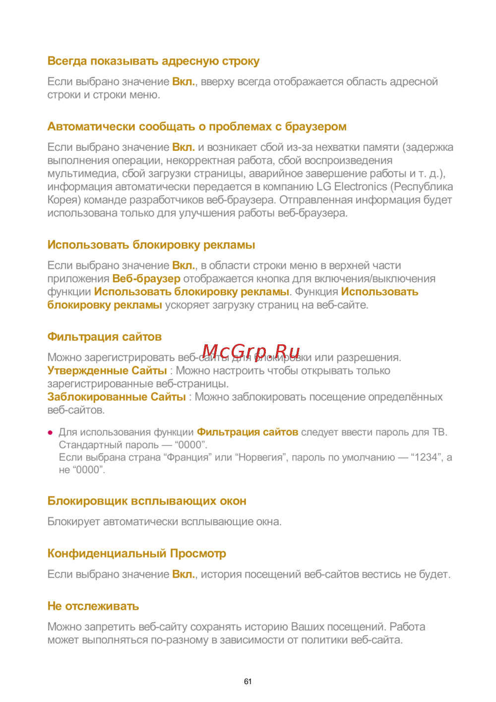 LG 50UN80006LC — настройки веб-браузера: управление адресной строкой и блокировкой [61/134]