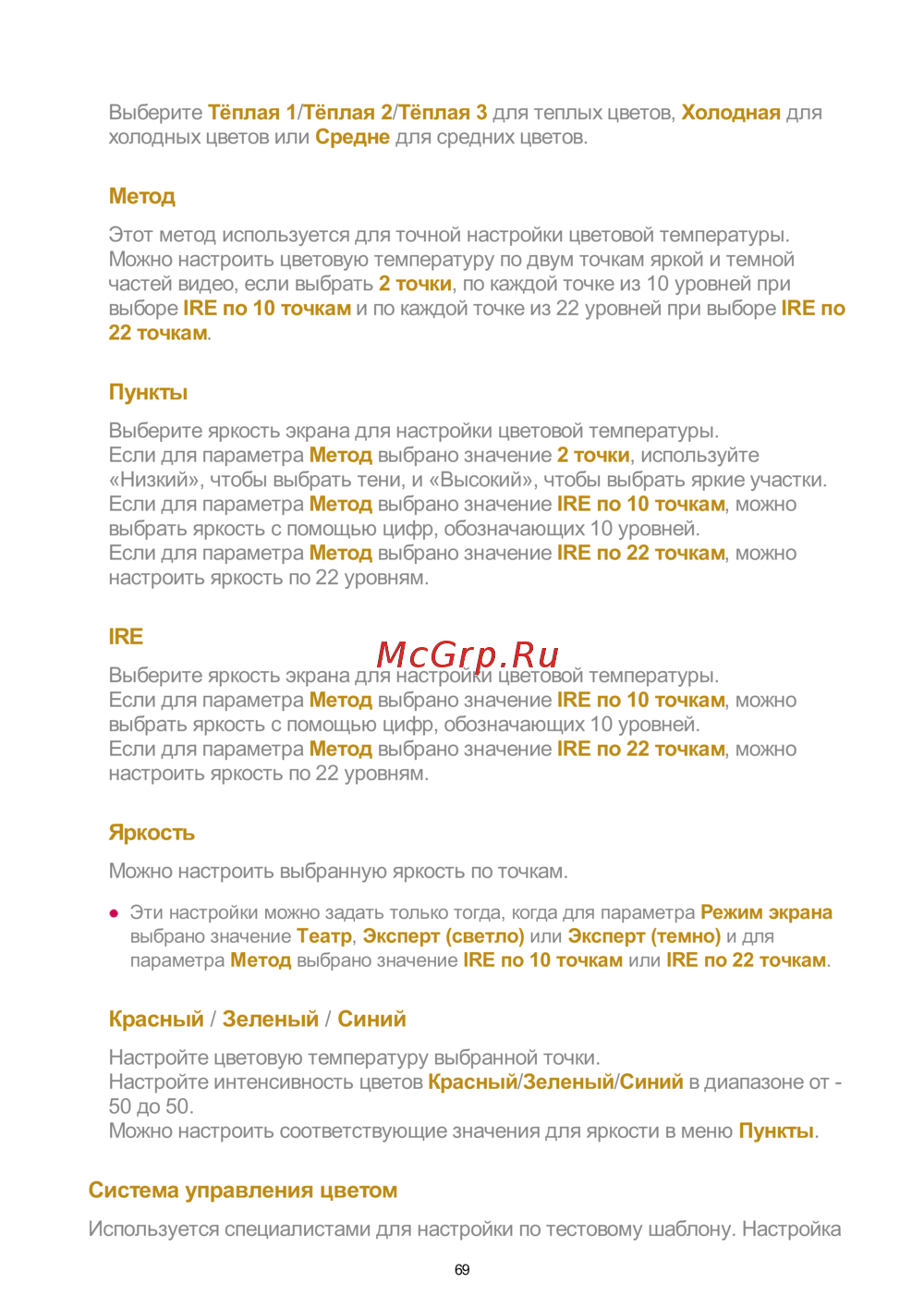 Настройте интенсивность цветов Красный/Зеленый/Синий в диапазоне от -