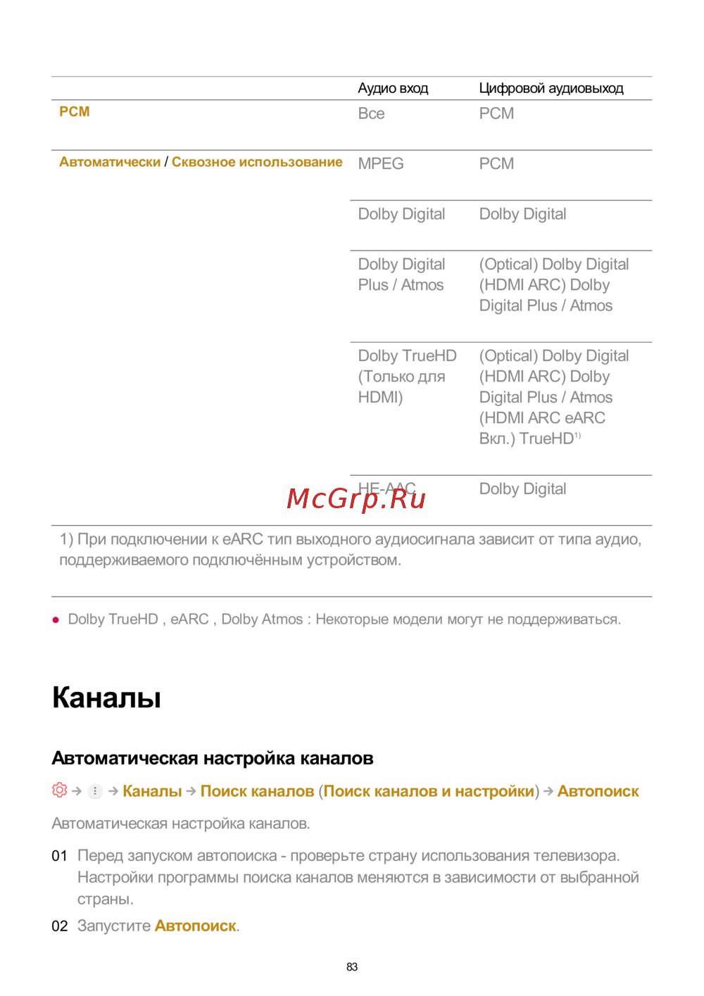 Dolby TrueHD , eARC , Dolby Atmos : Некоторые модели могут не поддерживаться.