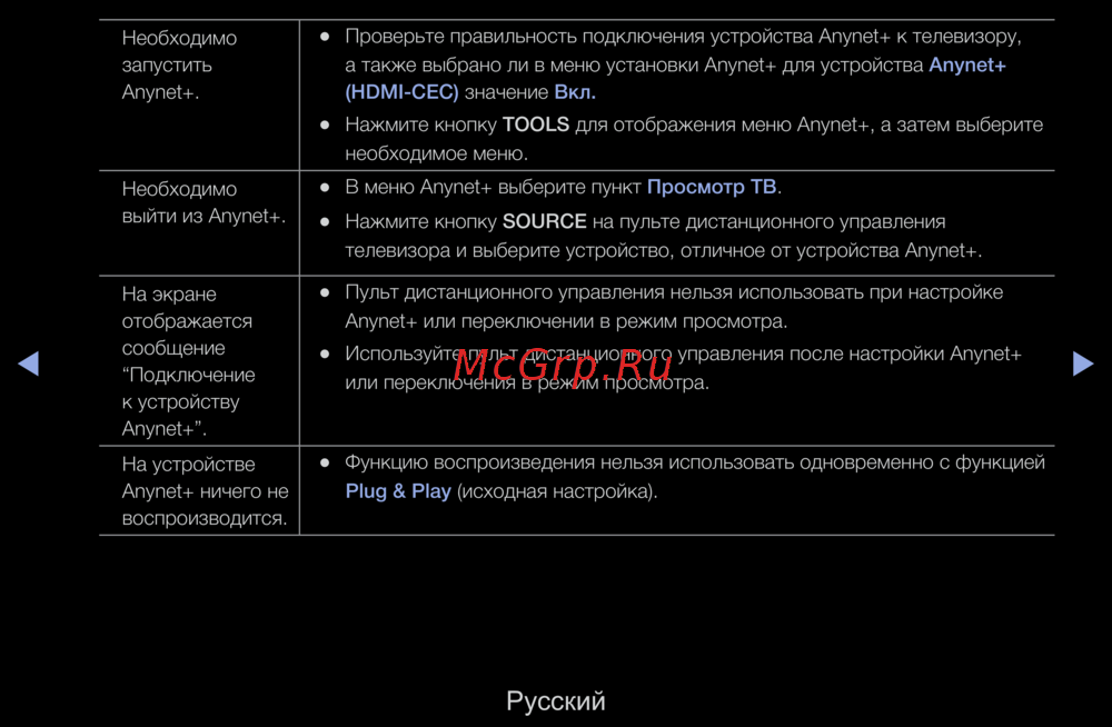 а также выбрано ли в меню установки Anynet+ для устройства Anynet+