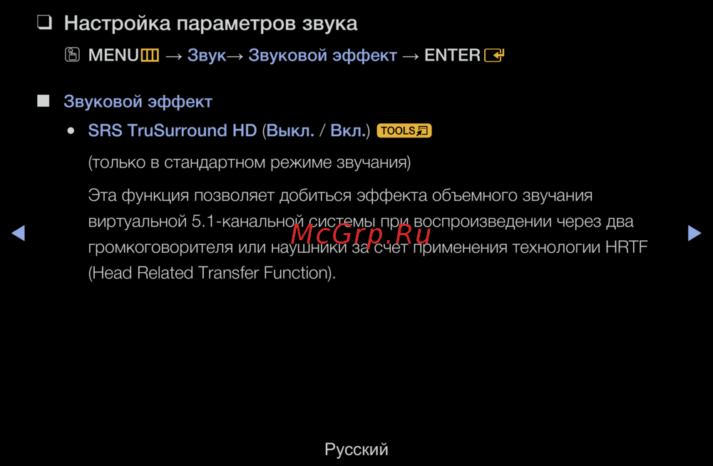 - Доступно если в качестве источника входного сигнала параметр вход установлено значение тв русский p.88