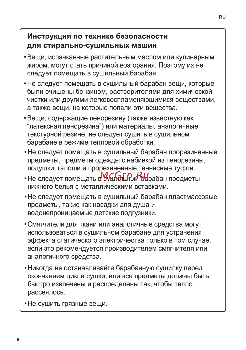 LG F1296HDS1 Инструкция по эксплуатации онлайн [8/52] 618184