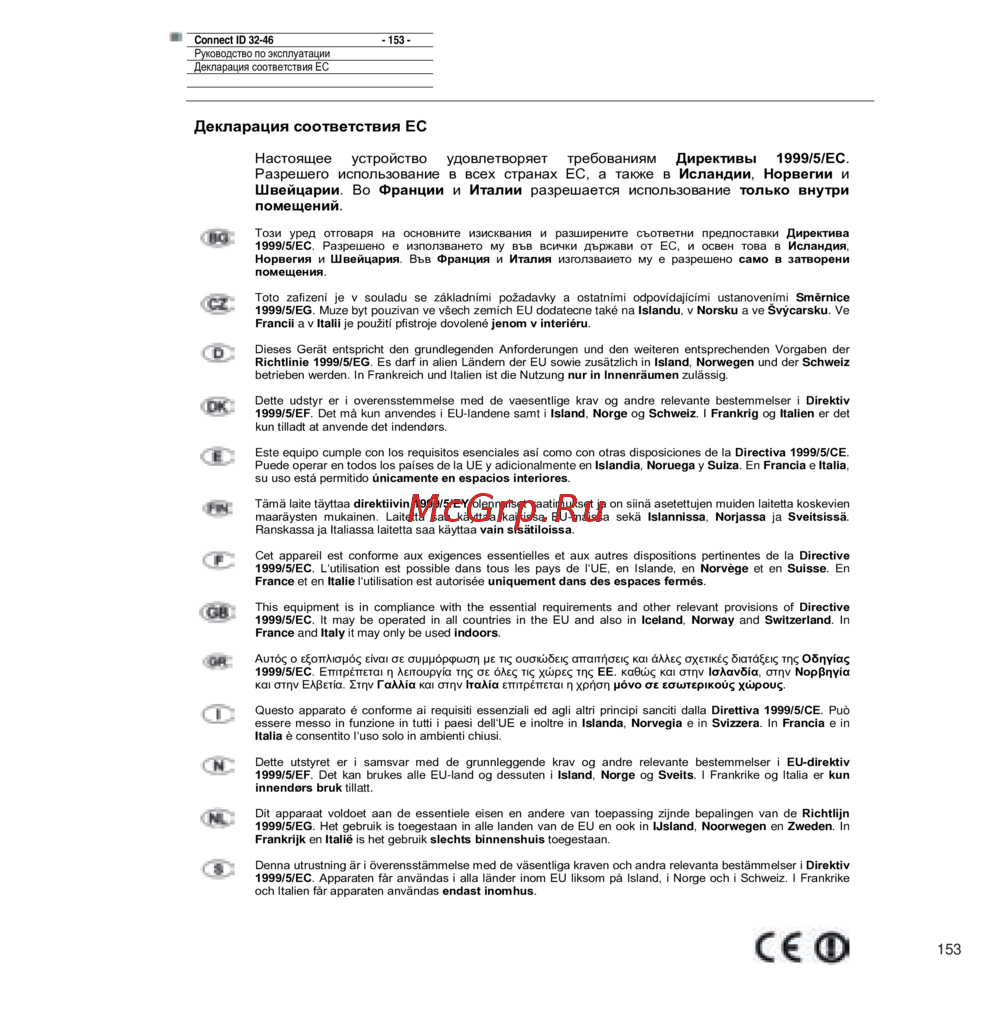 - Настоящее устройство удовлетворяет требованиям директивы 1999 5 ec p.153