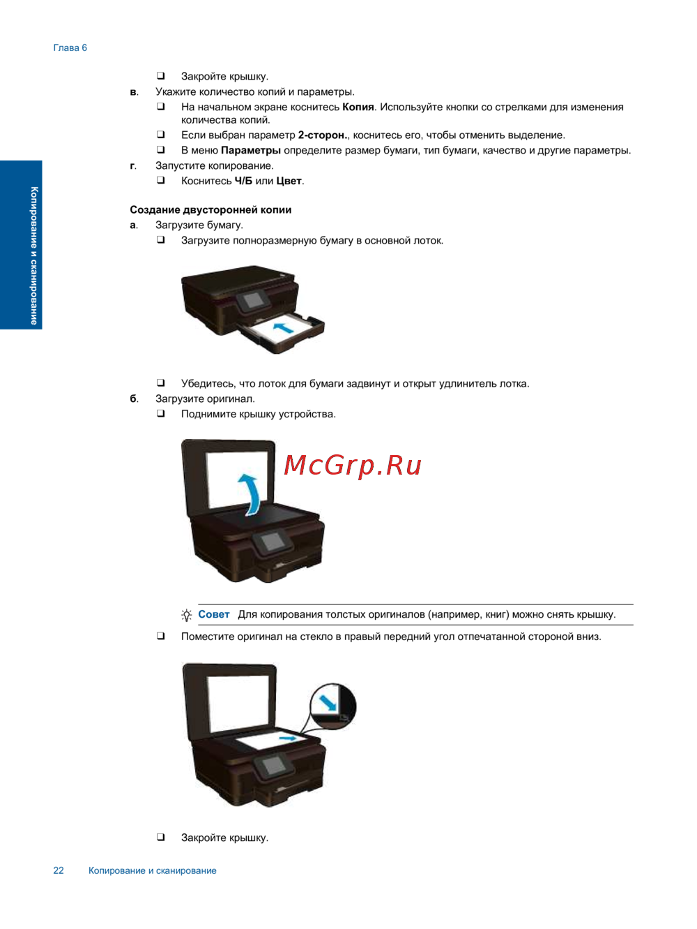 Совет Для копирования толстых оригиналов (например, книг) можно снять крышку.