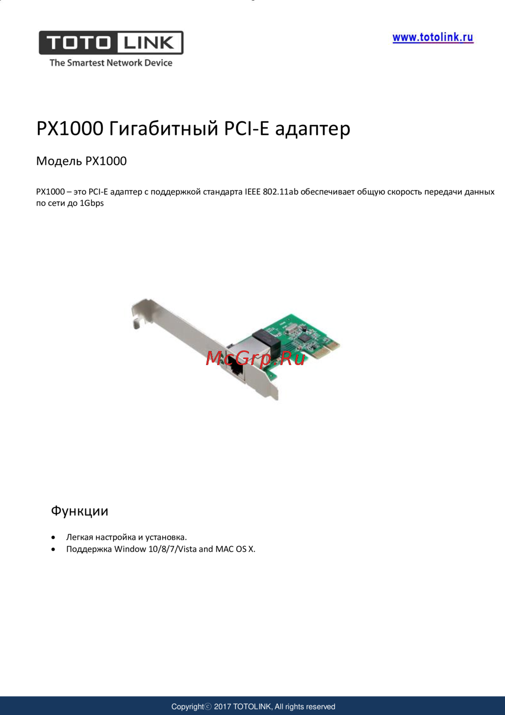 TOTOLINK PX1000 Инструкция по эксплуатации онлайн