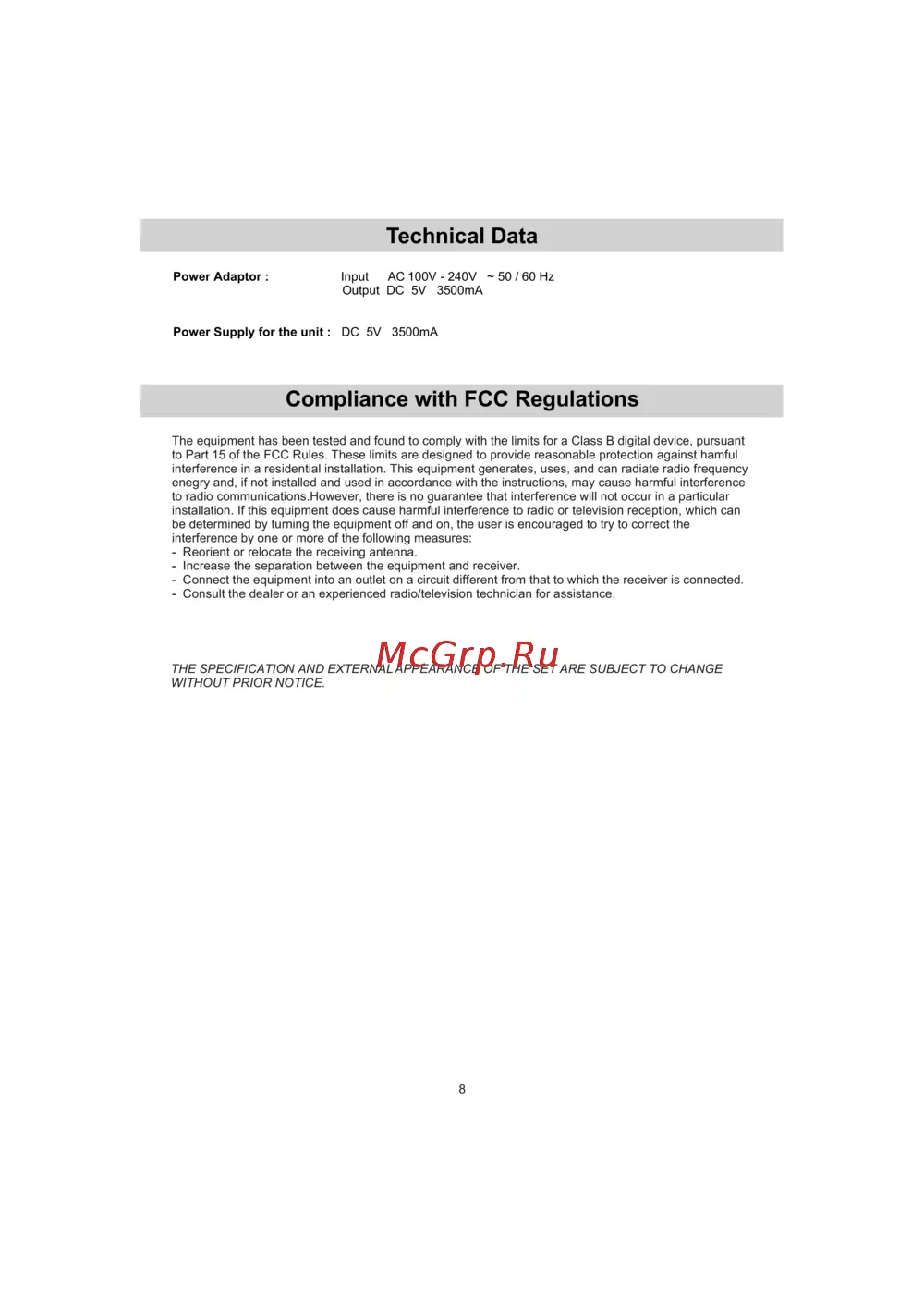Узнайте о технических характеристиках адаптера питания с входом 100-240В и выходом 5В 3500мА. Соответствие стандартам FCC и советы по устранению помех.