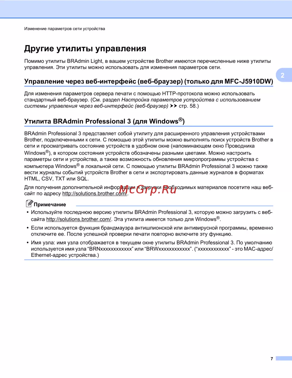 http://solutions.brother.com/. Эта утилита имеется только для Windows