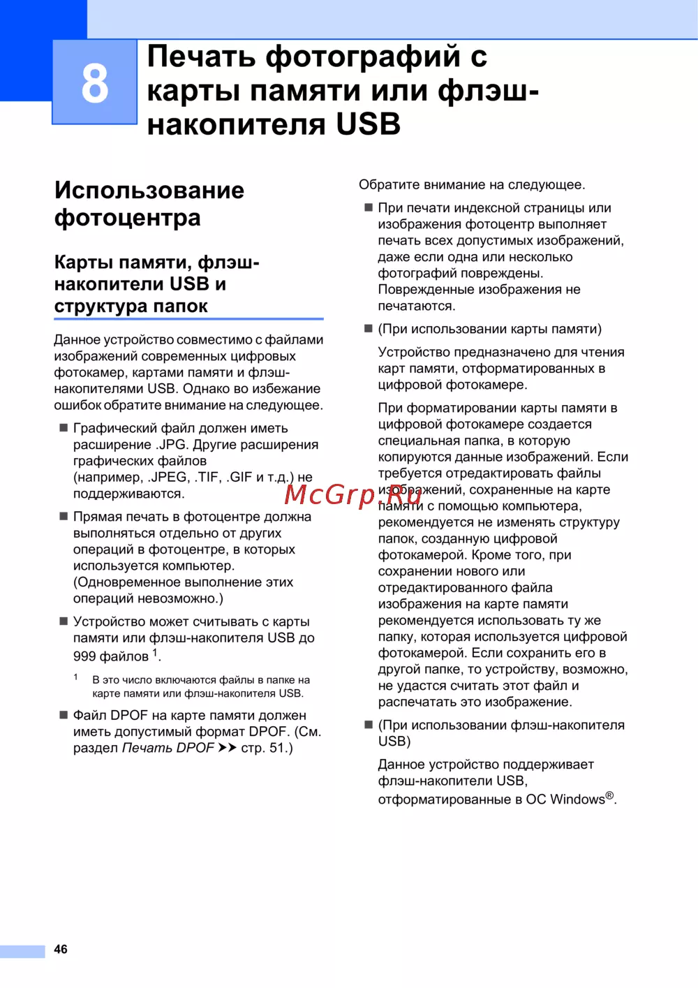 - Печать фотографий с карты памяти или флэш накопителя usb 46 p.5