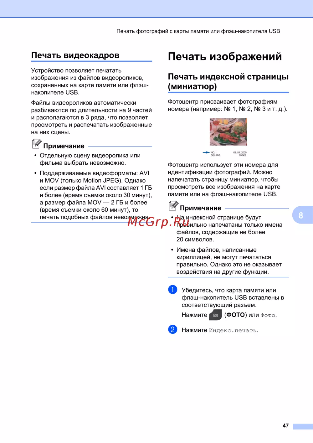 Brother MFC-J825DW — печать фотографий и видеокадров с карты памяти и USB [53/85]