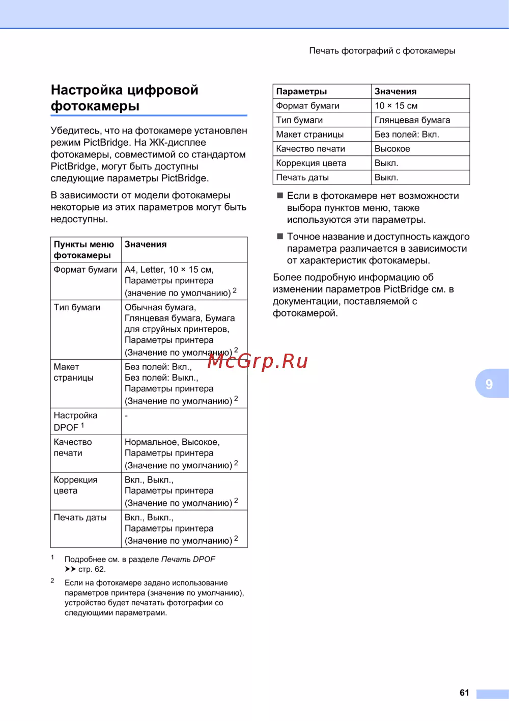 Brother MFC-J825DW — настройка печати фотографий с цифровой фотокамеры [67/85]