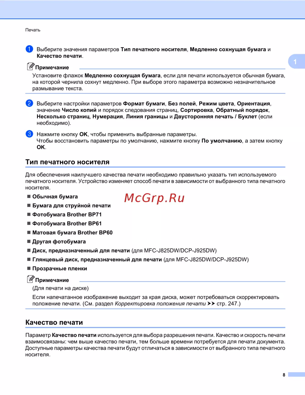 Brother MFC-J825DW — настройки печати: выбор параметров и качество печати [18/266]