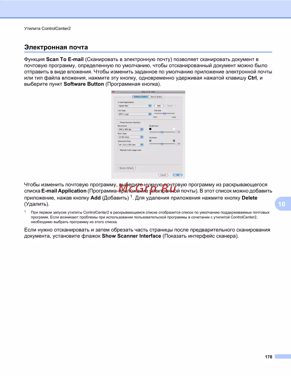 почтовую программу, определенную по умолчанию, чтобы отсканированный документ можно было