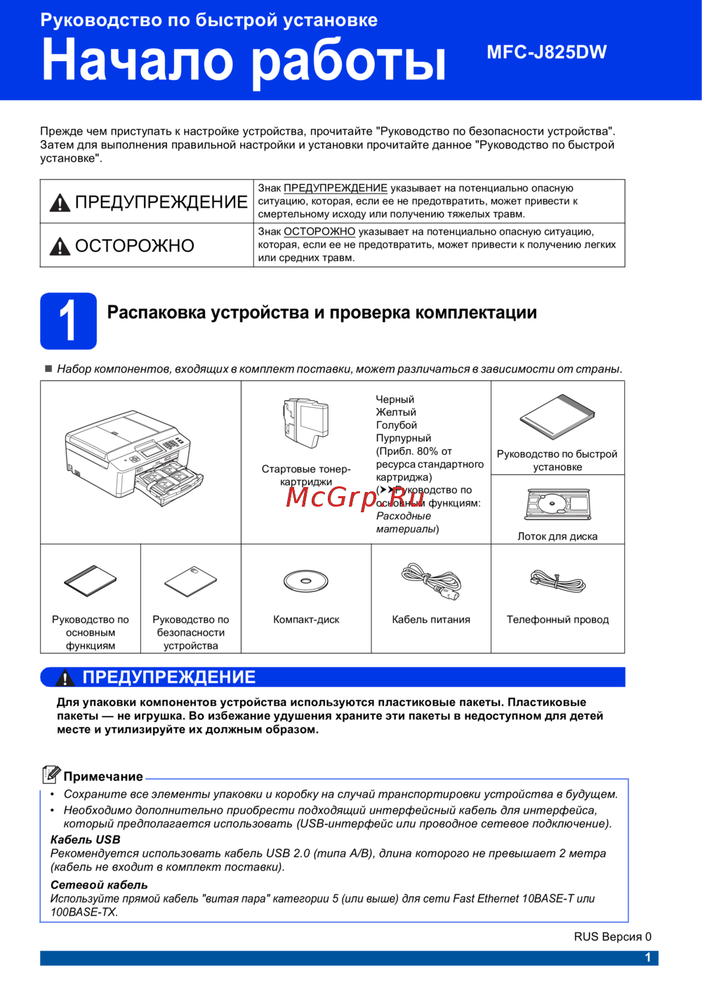 Затем для выполнения правильной настройки и установки прочитайте данное "Руководство по быстрой